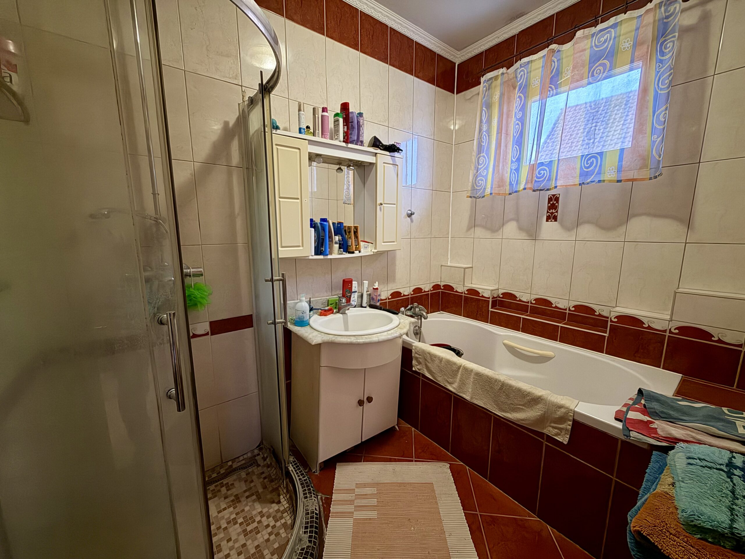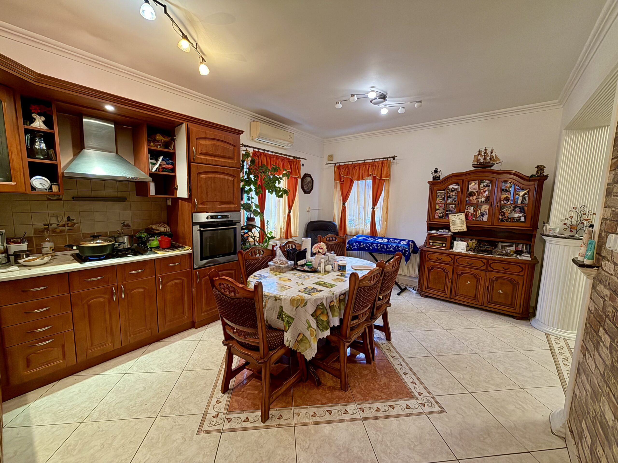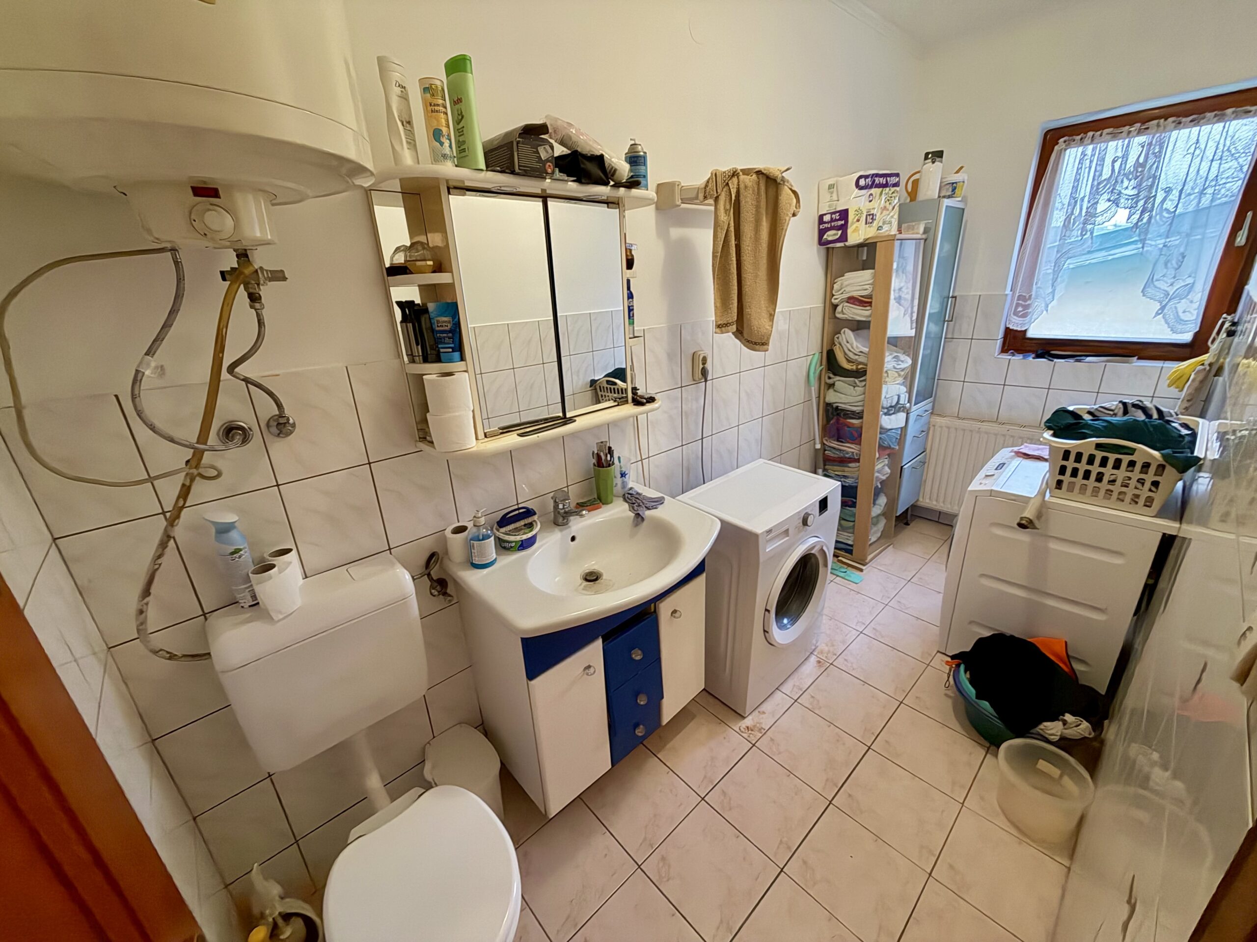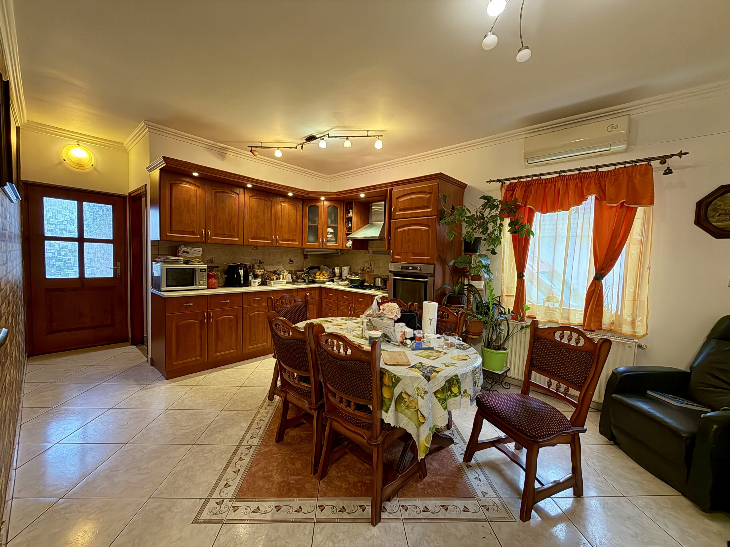 A földszint egy tágas, világos fogadó- és előtérrel indul, ahonnan kényelmesen megközelíthető a nagy méretű nappali, valamint a szép állapotú, teljesen felszerelt konyha. A konyhához egy praktikus spejz kapcsolódik, amely nyári konyhaként is funkcionál. Ezen a szinten található továbbá egy különálló szoba, amely jelenleg hálószobaként szolgál, de elrendezése miatt ideális lehet dolgozószobának vagy vendégszobának is. Az alsó szinten helyet kapott egy zuhanyzóval és fürdőkáddal felszerelt fürdőszoba, egy különálló mellékhelyiség, valamint egy mosókonyha, amely szintén saját WC-vel rendelkezik.