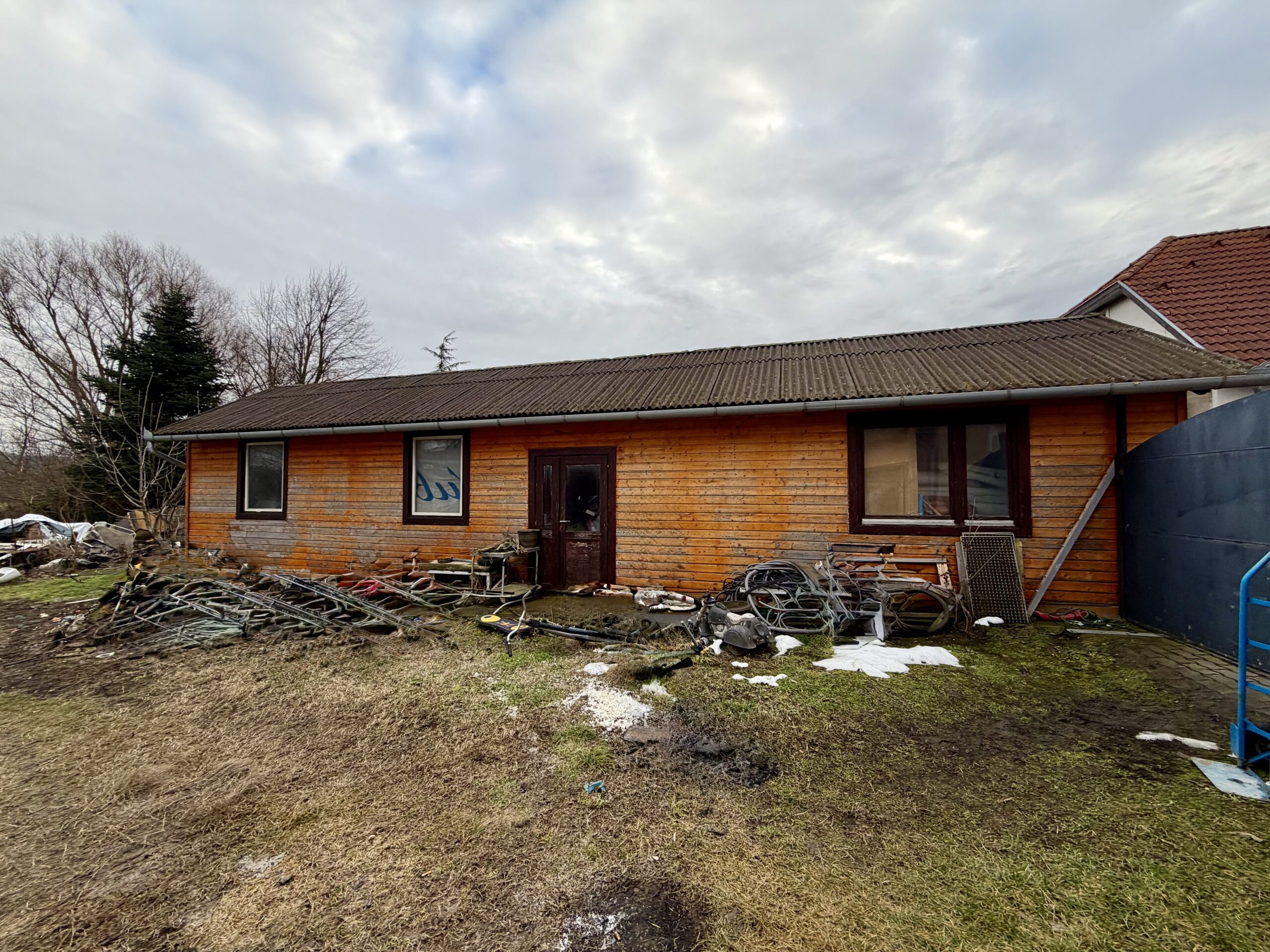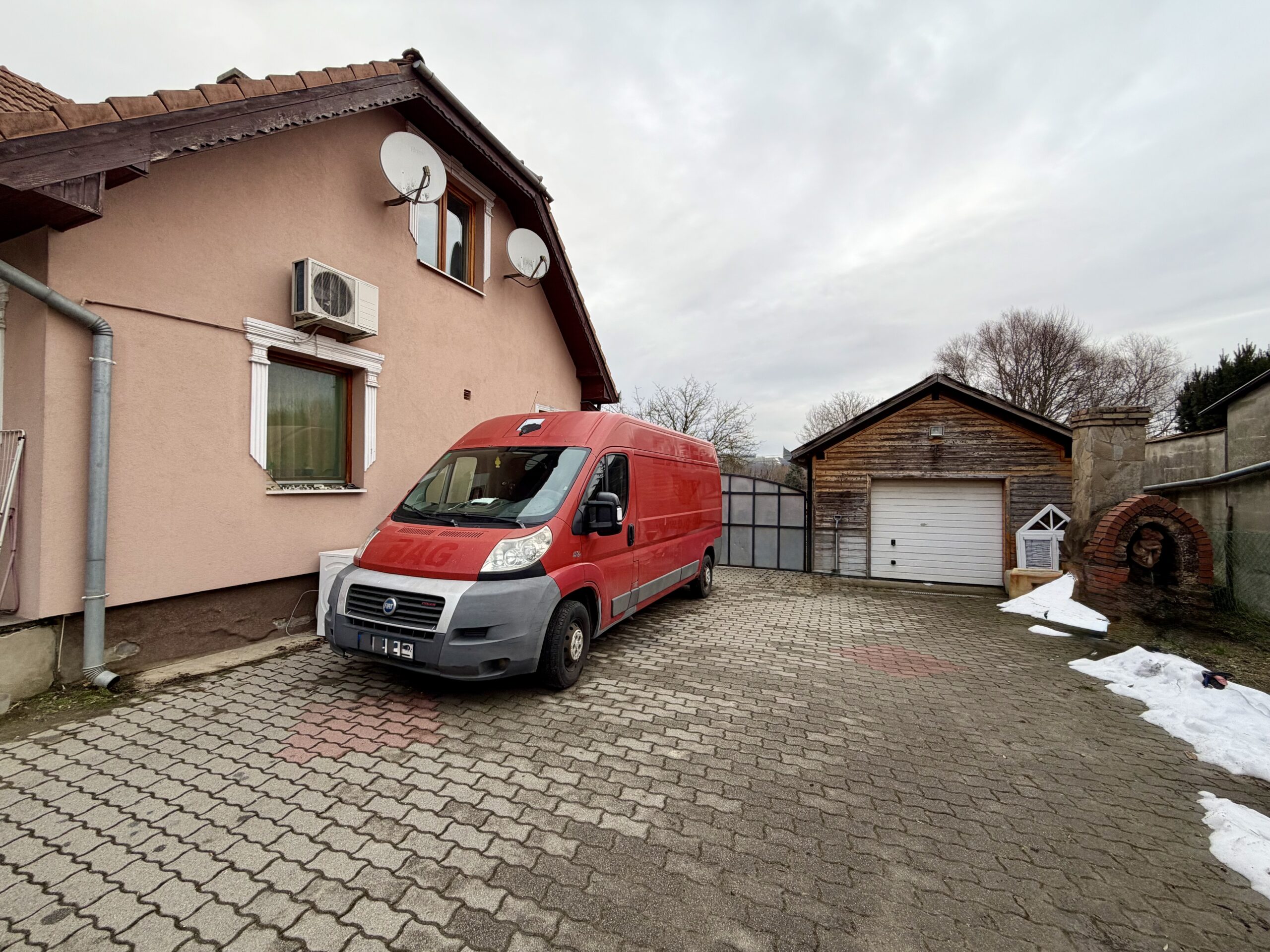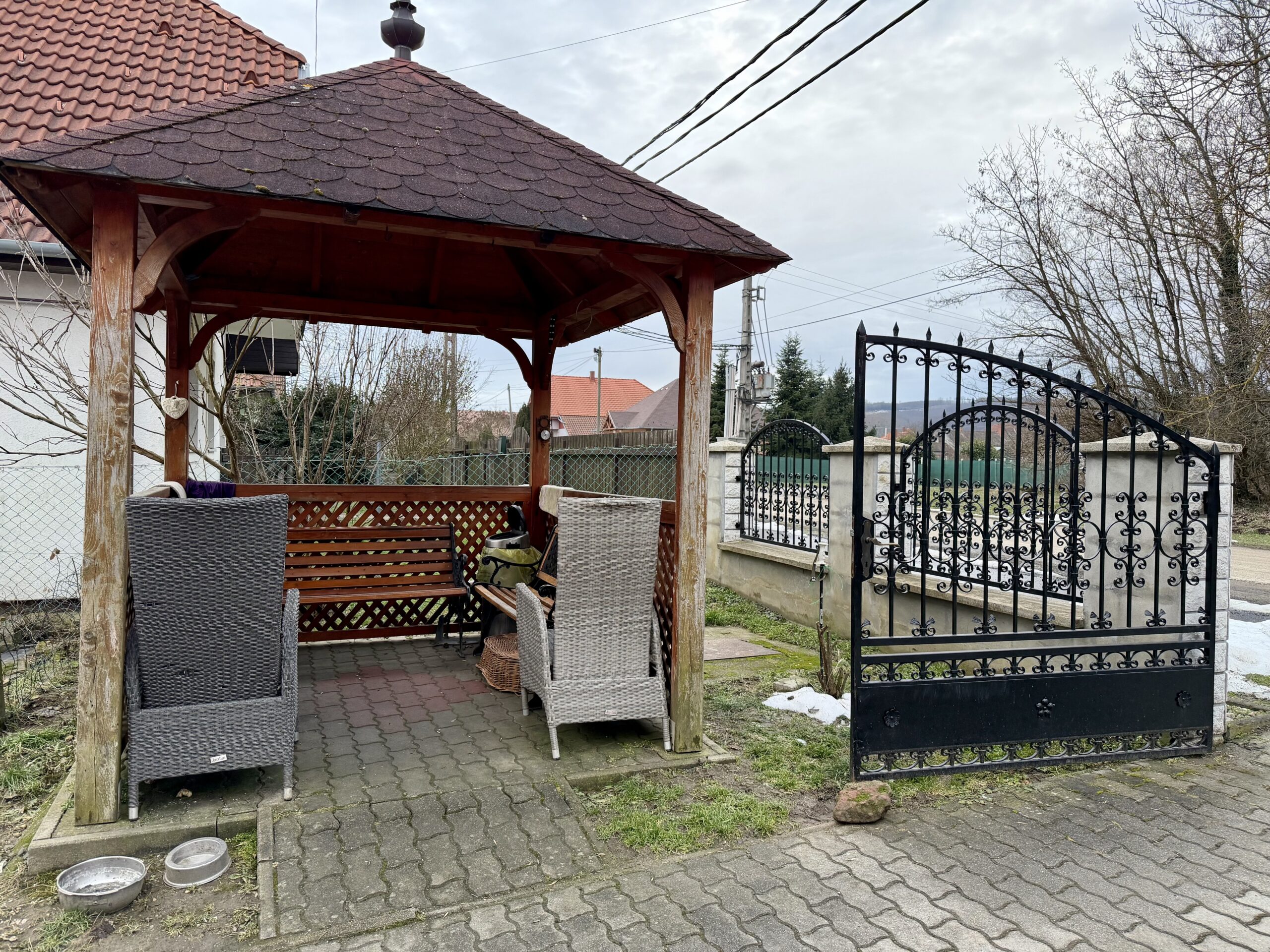A telek első része térkövezett, itt található egy hangulatos pavilon, valamint egy rendkívül tágas, három férőhelyes garázs. A kert hátsó részében több melléképület kapott helyet, amelyek kiválóan alkalmasak tárolásra vagy akár további járművek elhelyezésére, továbbá a főépülethez közvetlenül csatlakozik egy pince is. A melléképületek nagy kapukon keresztül is megközelíthetők, ami különösen előnyös autótárolás vagy műhely kialakítása esetén.